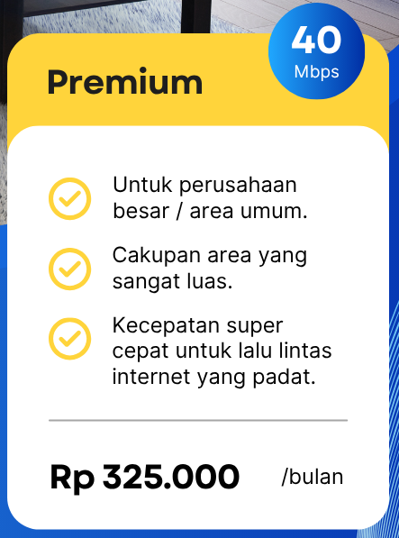 What I Do? Anda Akan Mendapatkan Internet Yang Lebih Cepat Dari Vinet. 185.000rb Termasuk Biaya Pasang Email SubmitThe form has been submitted successfully!There has been some error while submitting the form. Please verify all form fields again. 185.000 Join NoWW Proudly featured on: pACKET FREE INSTALASI SOHO FREE INSTALASI BUSINESS FREE INSTALASI PREMIUM View All Deals cover area PUSPA RAYA